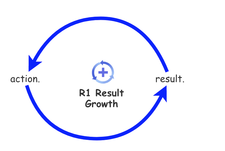 The Limits to Growth Archetype begins with the basic reinforcing loop where the [action] is intended to grow [result] which influences more of the same [action].
